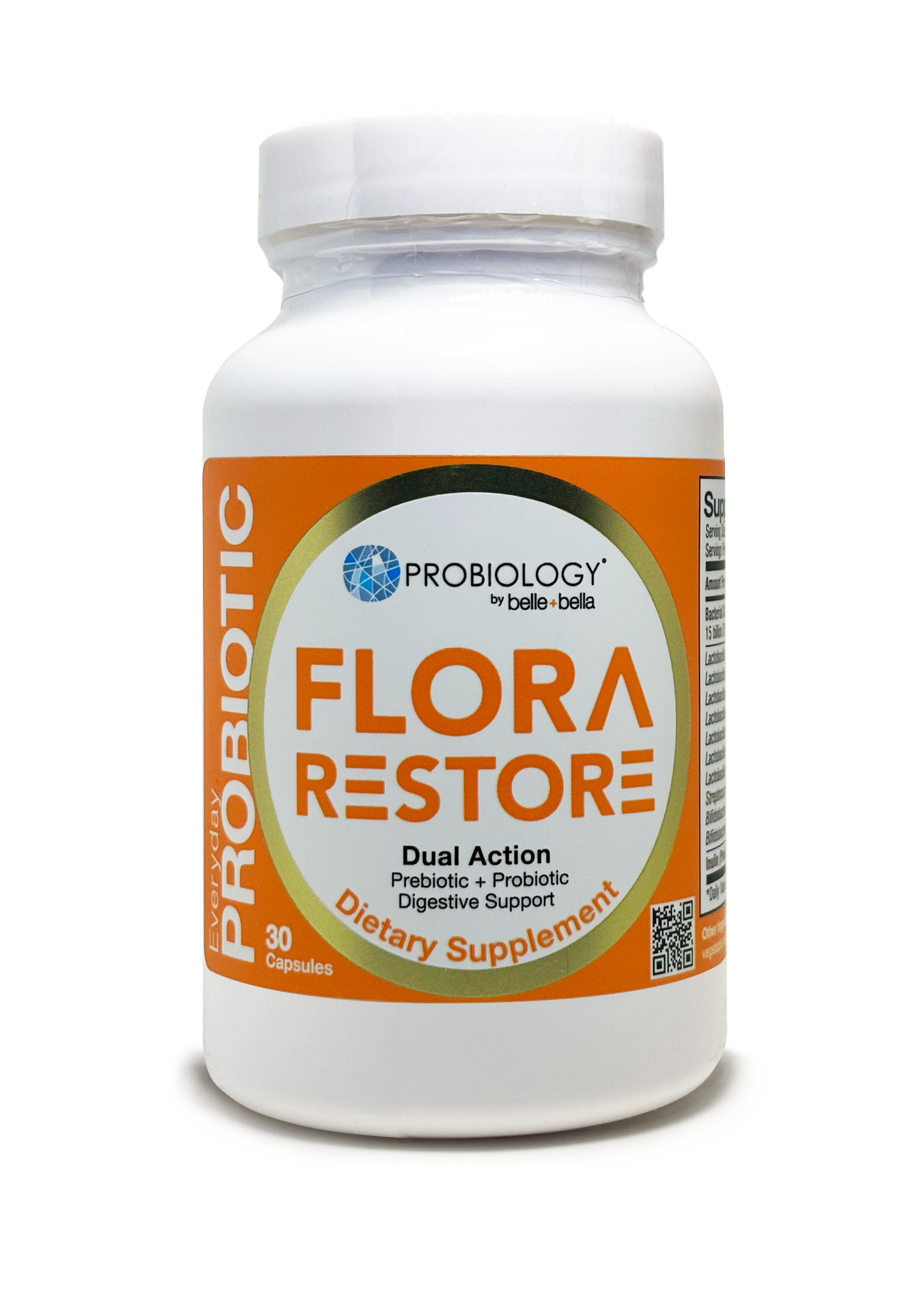 Flora Restore is a broad-spectrum probiotic featuring 10 clinically validated strains to support digestion, immunity, and overall gut balance. High potency, low cost, the best value in everyday probiotics.